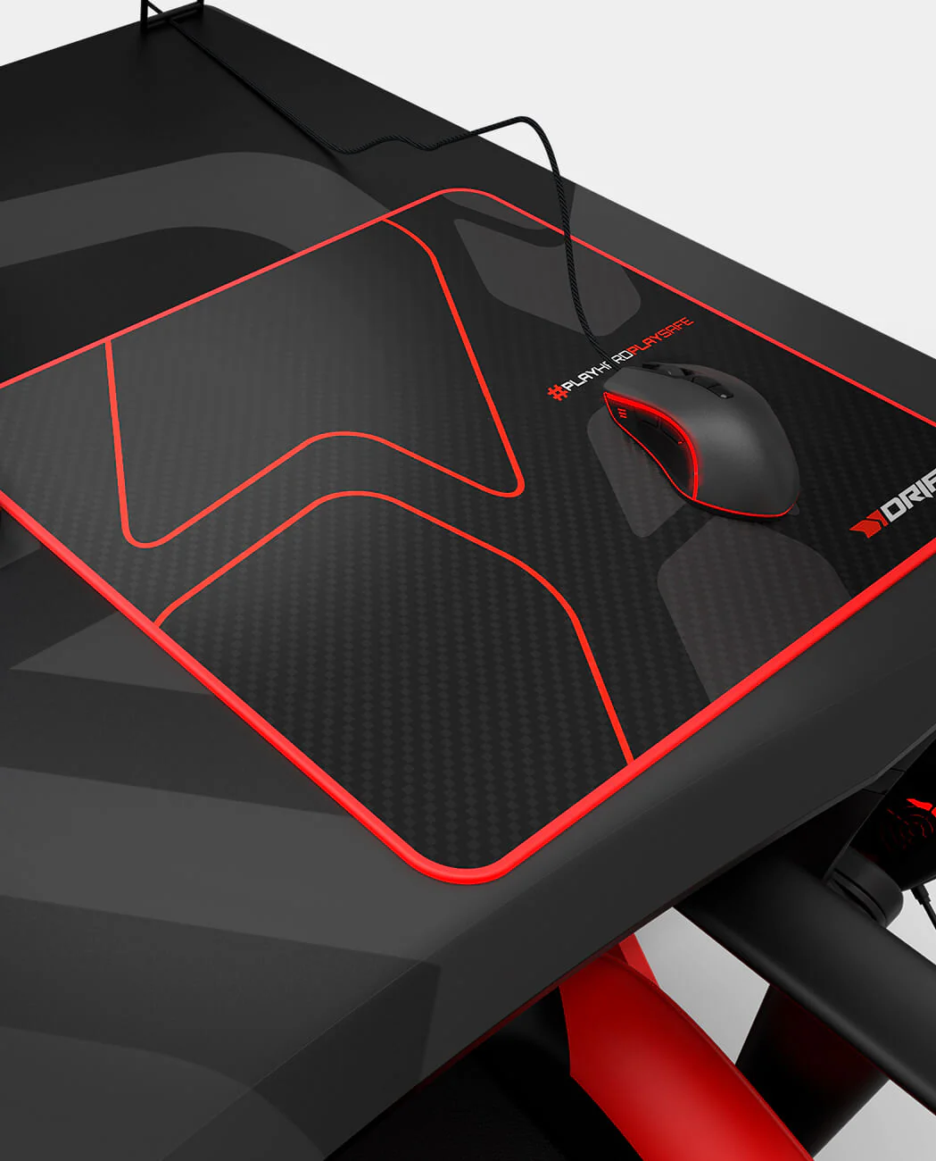 DRIFT V2. Ancho: 450 mm, Profundidad: 400 mm. Color del producto: Negro, Rojo, Coloración de superficie: Monocromo, Material: Caucho, Descansa muñecas, Bordes rematados, Base antiderrapante, Alfombrilla de ratón para juegos